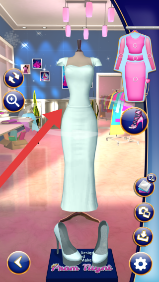 2、進(jìn)入到場景內(nèi),我們需要先對禮服進(jìn)行改造,改造可根據(jù)玩家自身的喜好進(jìn)行操作,可選擇屏幕進(jìn)行觀察。