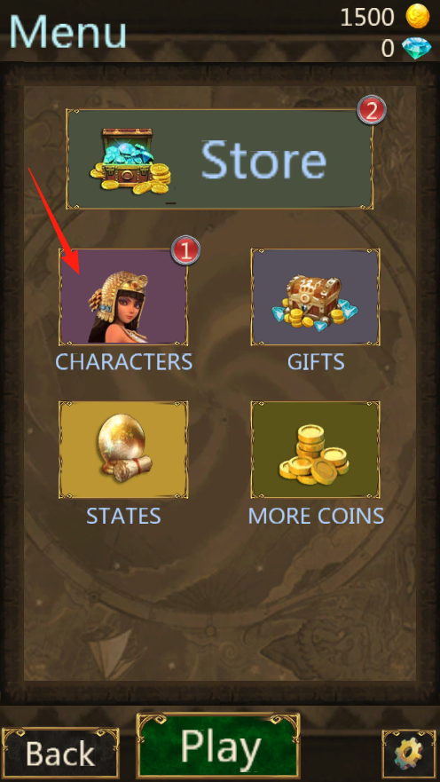 2、主菜單這里金幣和鉆石要省著用,商店紅點(diǎn)提示有新物品上架,角色欄還有個(gè)新人物待解鎖,更多金幣按鈕可以看廣告賺外快,不過每天有次數(shù)限制,建議留著買重要道具。