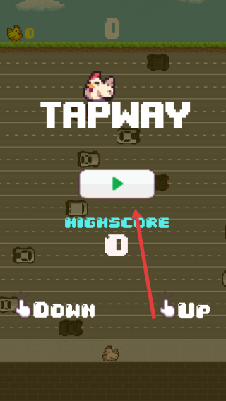 1、點擊主界面中的綠色播放按鈕,開啟Tapway游戲,操控小雞挑戰(zhàn)過馬路,躲避車輛。
