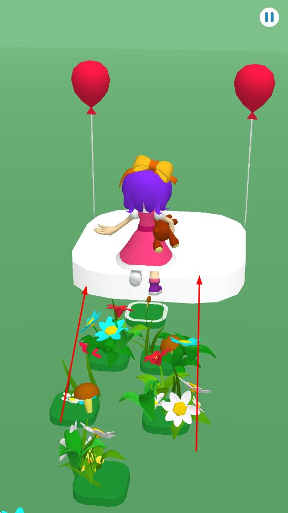 3、成功躍過(guò)鱷魚池后,抵達(dá)氣球懸掛的白色平臺(tái),角色平穩(wěn)著陸,完成本關(guān)卡挑戰(zhàn),開啟下一段童話冒險(xiǎn)。