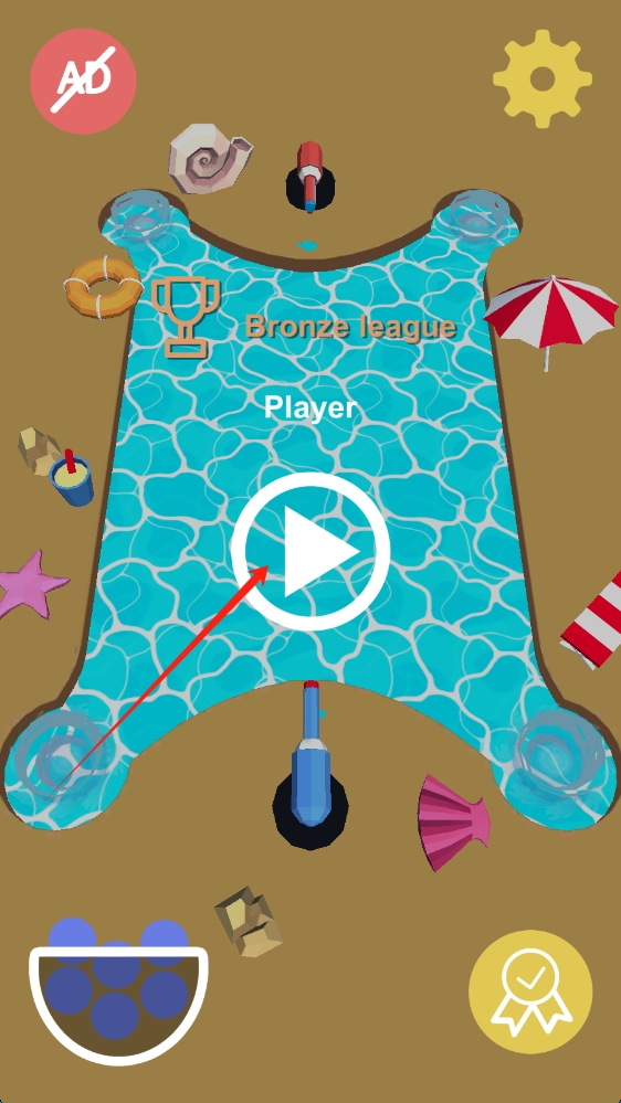 1、在Bronze-league界面,點擊播放按鈕,開啟泳池主題的休閑游戲挑戰(zhàn),點擊開始游戲。
