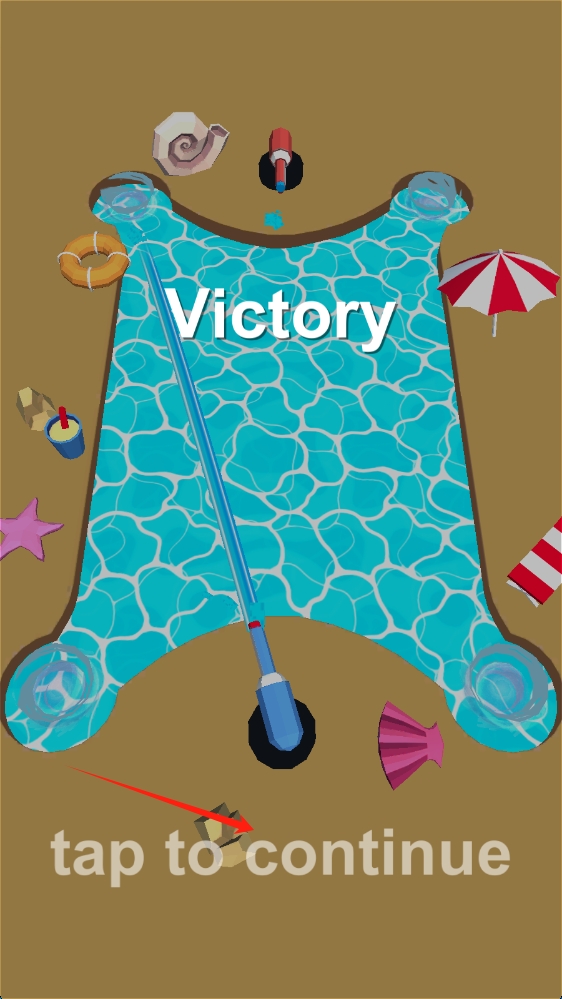 3、Victory勝利后,點擊tap-to-continue,進入下一關,繼續(xù)泳池游戲冒險。