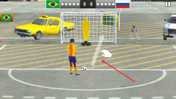 2、選擇已解鎖的SAINT PETERSBURG場(chǎng)地,匹配巴西vs俄羅斯等國家隊(duì)對(duì)戰(zhàn),進(jìn)入實(shí)時(shí)射門對(duì)決狀態(tài)。