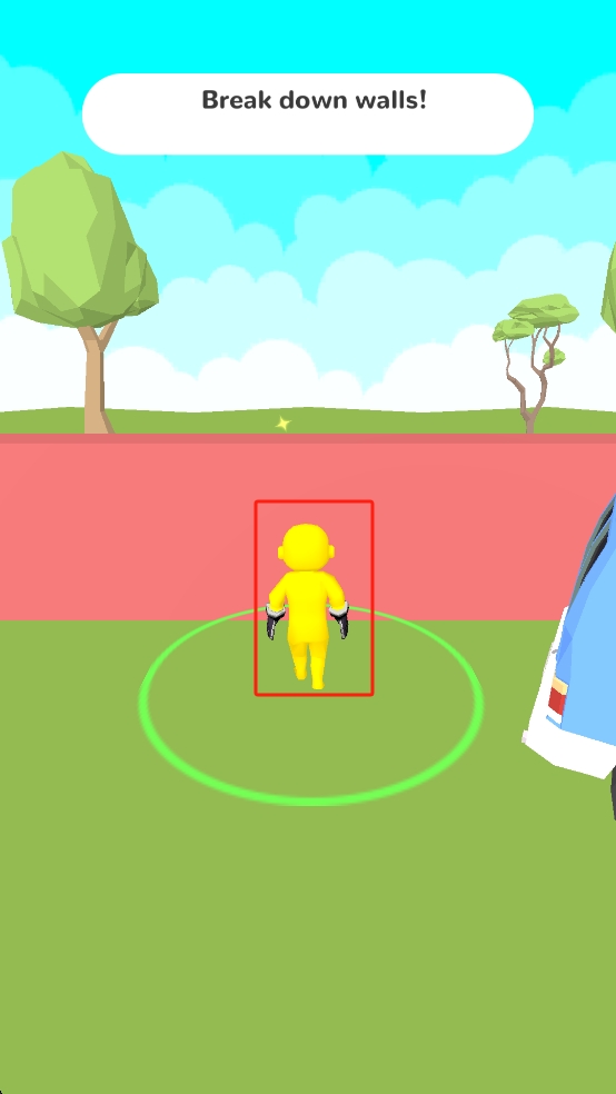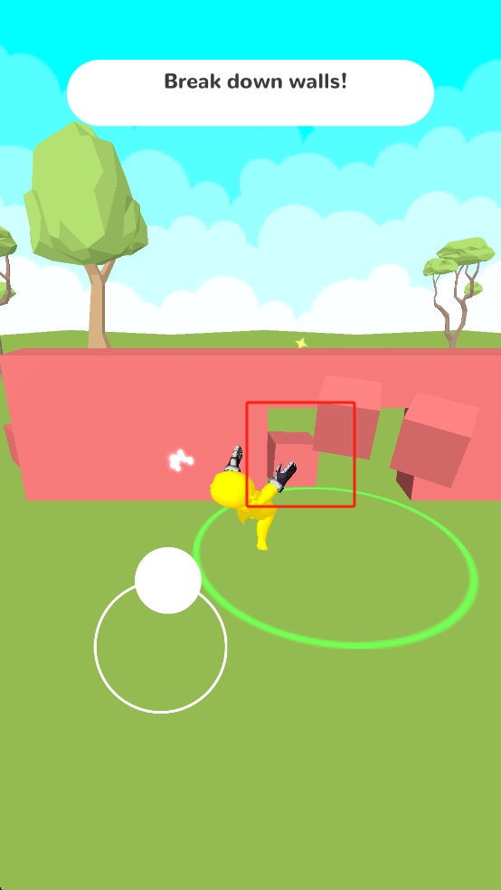 1、操控黃色角色靠近粉色墻壁,利用角色佩戴的手套,點(diǎn)擊或滑動(dòng)屏幕讓角色揮拳、踢腿,全力沖擊墻壁。