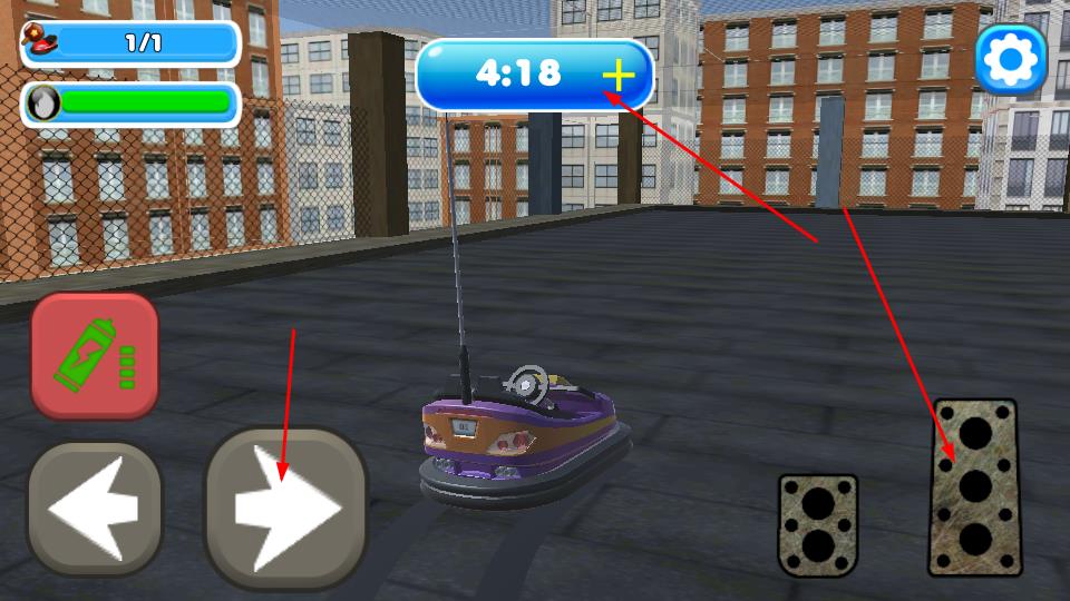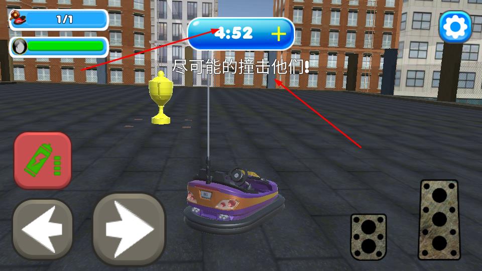 2、在賽場內(nèi)通過左側(cè)左右箭頭按鍵控制機(jī)車轉(zhuǎn)向,右側(cè)按鈕實(shí)現(xiàn)加速,利用4分52秒等限時(shí),遵循盡可能撞擊他們提示行動。