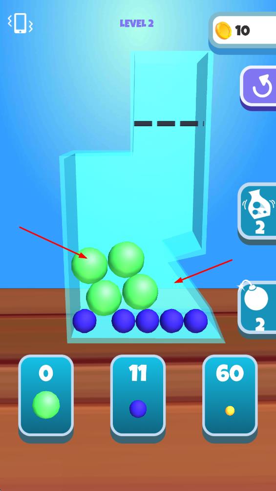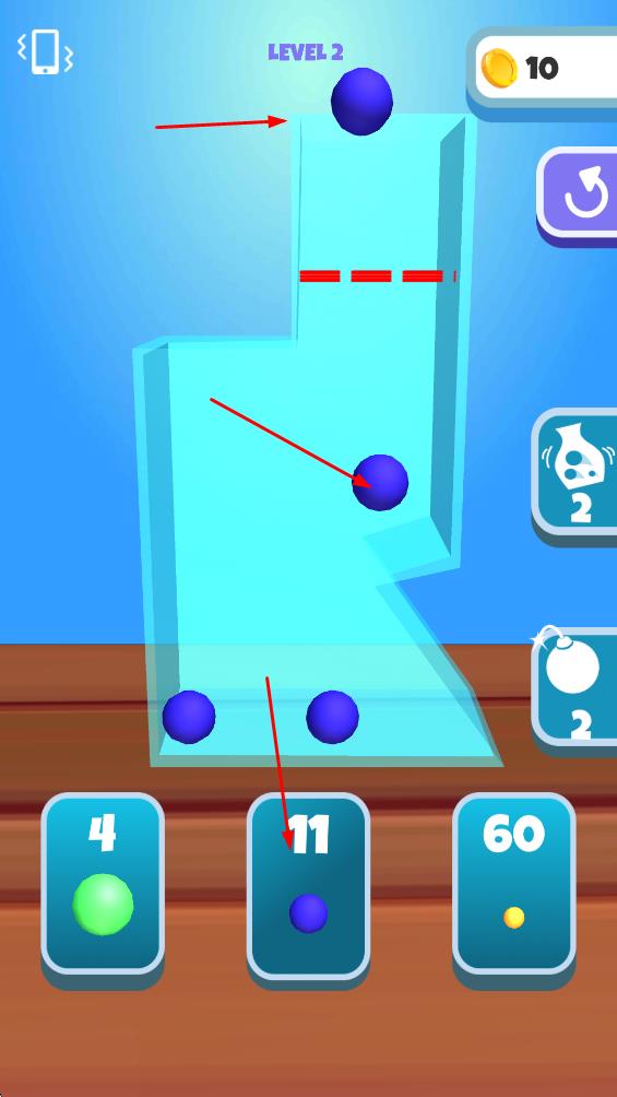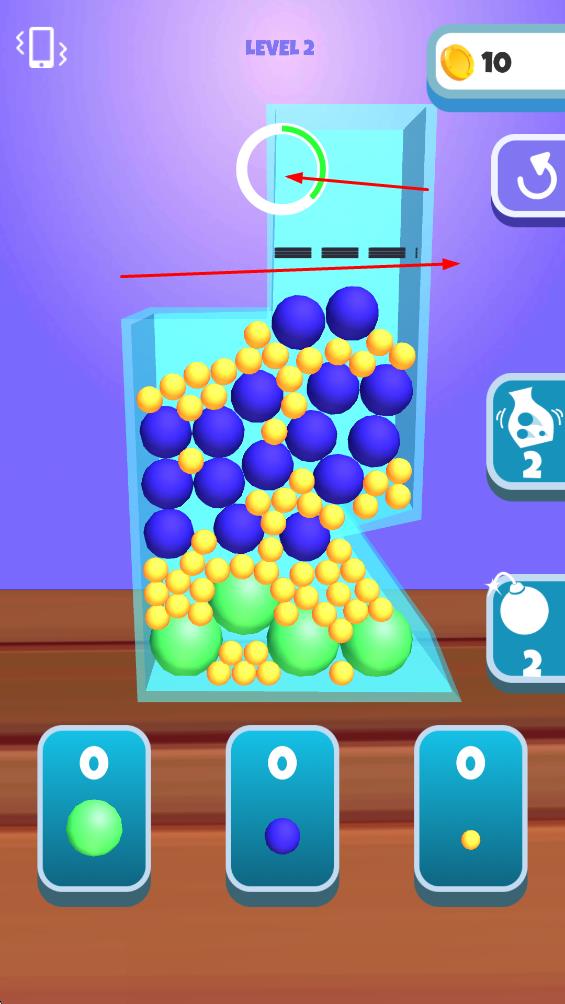 1、點(diǎn)擊控制釋放爆炸:點(diǎn)擊并按住屏幕釋放小球,觀察其下落與填充狀態(tài),若小球卡住阻礙繼續(xù)裝入,輕按卡住的小球即可使該區(qū)域爆炸,清除障礙后繼續(xù)裝球。