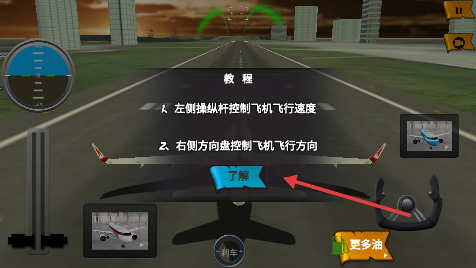 1、選擇客機(jī)或貨機(jī)執(zhí)行航線任務(wù),通過虛擬搖桿控制飛行姿態(tài)與高度。