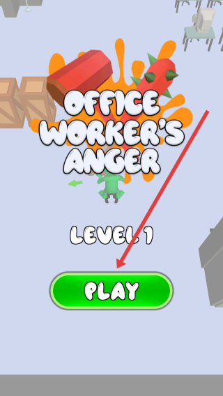 1、點擊綠色PLAY按鈕,進入Office-Worker's-Anger的LEVEL-1,開啟職場發(fā)泄主題的冒險,操控角色展開挑戰(zhàn)。