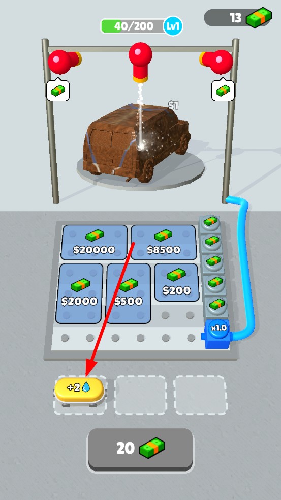 3、消耗金幣擴(kuò)建洗車(chē)車(chē)間,解鎖鉆石等稀有磚塊,合并特殊磚塊可產(chǎn)出雙倍資源,完成豪車(chē)清洗觸發(fā)連鎖獎(jiǎng)勵(lì)。