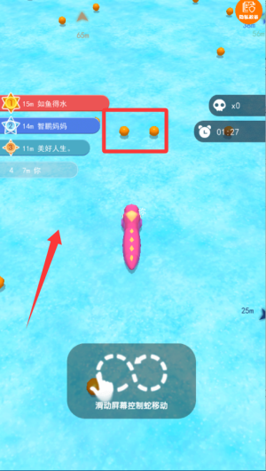 3、隨著身體變長(zhǎng),轉(zhuǎn)彎要提前規(guī)劃路線,利用身體圍住目標(biāo)再逼進(jìn),小心操作才能順利完成圍剿和吞噬。