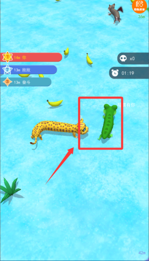 2、看到比你小的蛇可以靠近吞掉,它們會(huì)變成光點(diǎn)讓你繼續(xù)長(zhǎng)大,但遇到更大的蛇要繞著走,避免被圍堵。