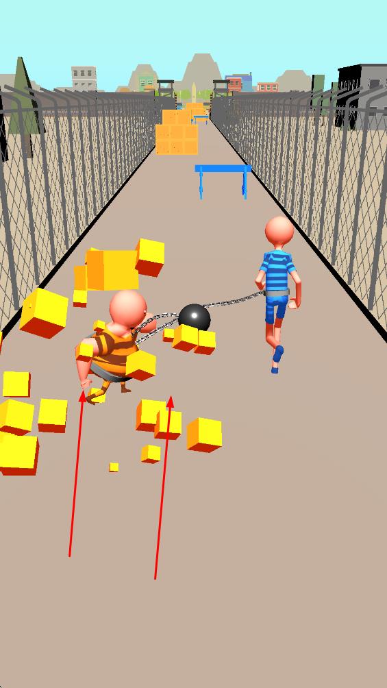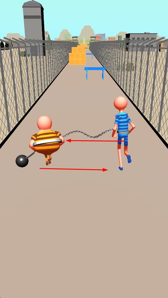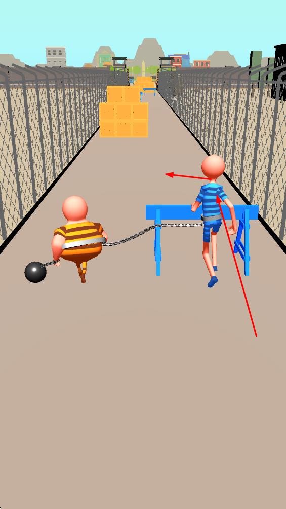 1、操控鐵鏈相連的兩個角色前行,帶鐵球的角色借助鐵球慣性,應(yīng)對路徑障礙,開啟逃亡進(jìn)程。