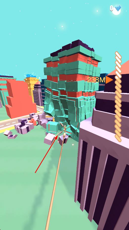 1、鉤子操控:長按屏幕蓄力調(diào)整鉤子拋出距離與角度,松開后鉤子飛出精準(zhǔn)勾住建筑,利用擺動(dòng)慣性反復(fù)撞擊薄弱部位提升破壞效率。