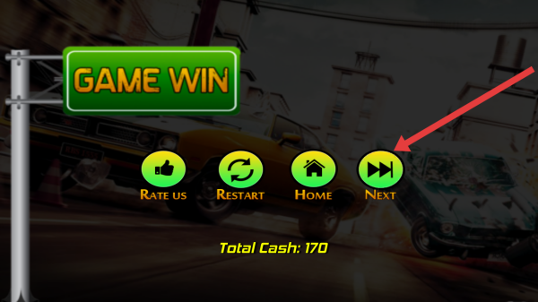 3、成功擊敗對(duì)手后,在GAME WIN界面,點(diǎn)擊右側(cè)Next按鈕,進(jìn)入下一個(gè)賽車關(guān)卡,繼續(xù)挑戰(zhàn)。