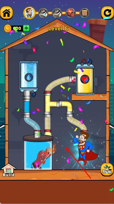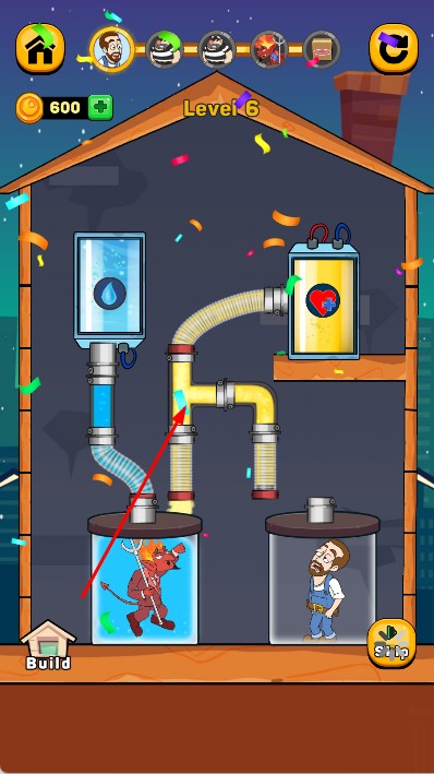 2、在房屋場(chǎng)景內(nèi),依據(jù)提示拖動(dòng)管道部件,連接左側(cè)儲(chǔ)水容器與右側(cè)關(guān)著怪物的容器,構(gòu)建完整水流通道。