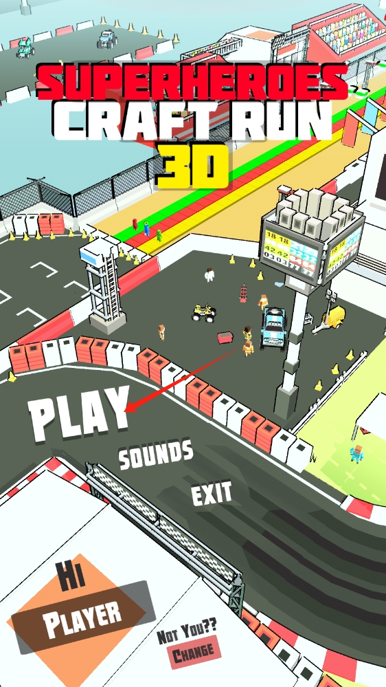 1、啟動(dòng)界面,點(diǎn)擊PLAY,開啟超級(jí)英雄跑酷挑戰(zhàn),進(jìn)入跑道關(guān)卡,點(diǎn)擊按鈕開始游戲。