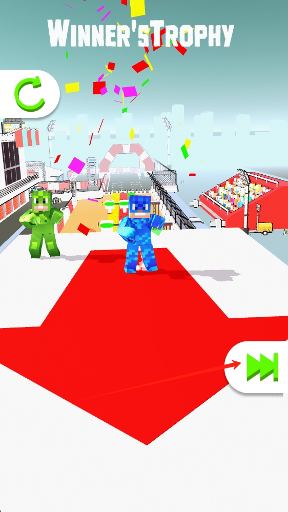 3、勝利界面,點(diǎn)擊綠色按鈕,領(lǐng)取勝者獎(jiǎng)杯,解鎖下一關(guān),繼續(xù)跑酷冒險(xiǎn),點(diǎn)擊下一關(guān)。