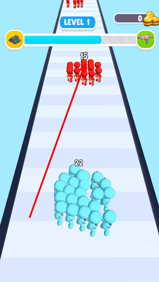 2、抵達(dá)終點(diǎn)前,藍(lán)色軍團(tuán)與紅色部落正面碰撞,人數(shù)差直接決定勝負(fù),戰(zhàn)斗時(shí)會(huì)消耗小人的數(shù)量。