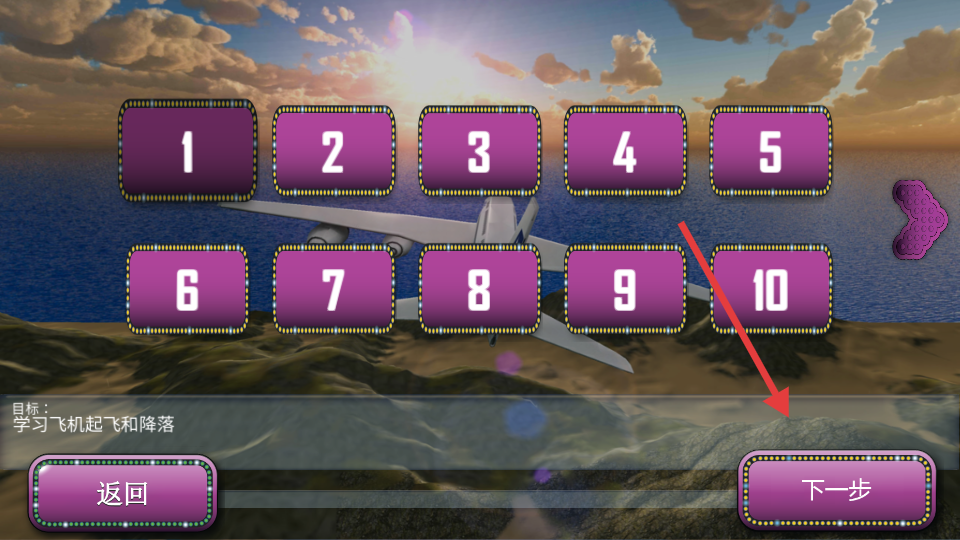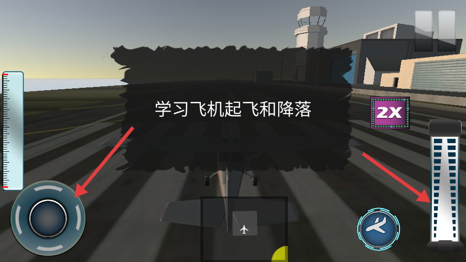 1、通過虛擬搖桿和儀表盤控制飛機爬升、轉(zhuǎn)向與降落。