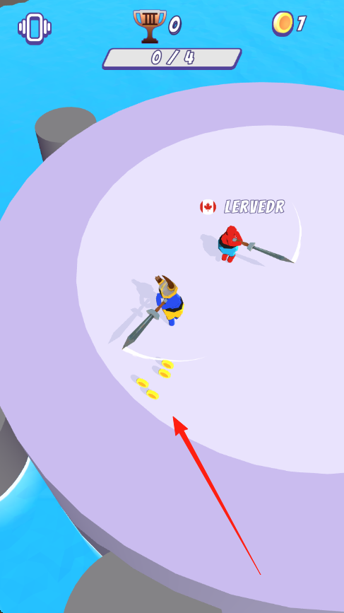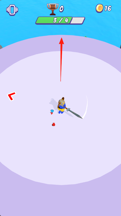 1、操控角色如戴角頭盔的,追箭頭指敵人,用劍攻擊,躲敵人反擊,收集金幣,提升淘汰數(shù),推進(jìn)進(jìn)度,贏比賽。