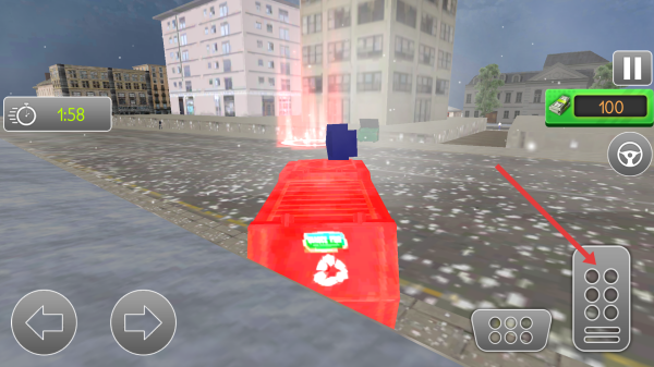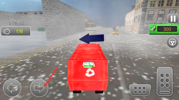 1、用左下角方向鍵操控紅色垃圾車移動(dòng),根據(jù)地圖箭頭指引前往任務(wù)點(diǎn),注意左上角時(shí)間限制。