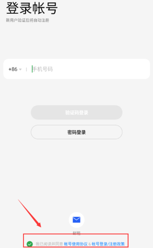 3、勾選紅框協(xié)議選項,同意條款后繼續(xù)登錄操作。