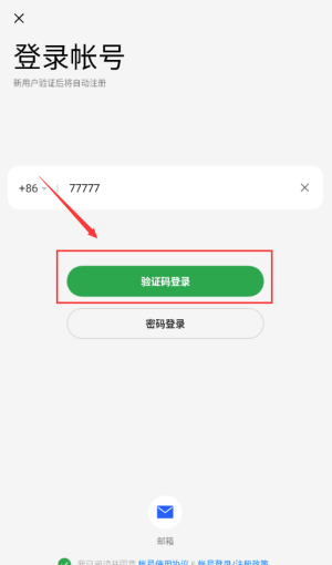 4、點擊紅框驗證碼登錄按鈕,獲取短信驗證碼登錄。