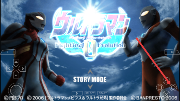1、在奧特曼格斗進(jìn)化0主界面,按箭頭指引點(diǎn)擊右下角圓形確認(rèn)按鈕,進(jìn)入STORY-MODE,開啟劇情模式的角色選擇流程。