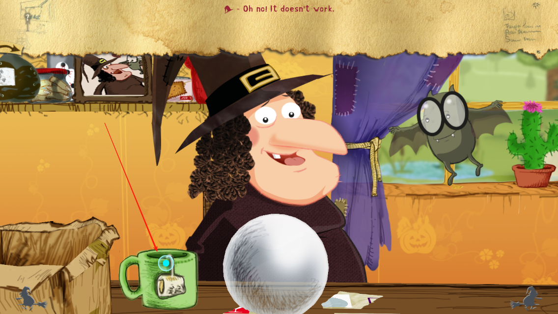 1、先熟悉女巫的基礎魔法技能和操作方式,嘗試使用魔法解決簡單阻礙,與女巫互動,點擊場景中的綠色杯子獲取線索。