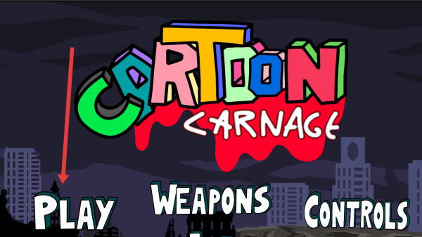 1、在Cartoon-Carnage主界面,點擊PLAY選項,進入戰(zhàn)斗場景,操控角色開啟卡通格斗冒險,直面敵人挑戰(zhàn)。