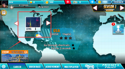 1、環(huán)球冠軍巡回賽模式精心設(shè)計(jì)12個(gè)賽季的賽事征程,每賽季包含8個(gè)風(fēng)格迥異的城市分站賽,從迪拜摩天樓群到巴黎香榭麗舍大道。