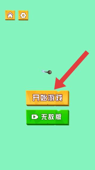 1、主菜單界面:點擊開始游戲進入關(guān)卡,亦可選擇無敵版體驗,左上角房屋與齒輪用于返回主頁與設(shè)置。