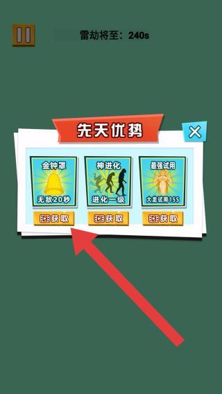 2、畫面呈現(xiàn)了游戲場景的頁面,玩家一進入便可獲得先天的優(yōu)勢,玩家需要通過觀看視頻來獲得這些技能。