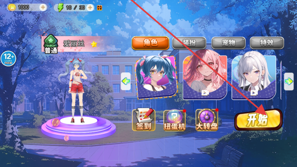 1、在角色界面,確認(rèn)選擇的角色如愛(ài)麗絲,點(diǎn)擊右下角開(kāi)始按鈕,進(jìn)入關(guān)卡選擇頁(yè)面,可參與簽到、扭蛋等活動(dòng)后再開(kāi)始冒險(xiǎn)。