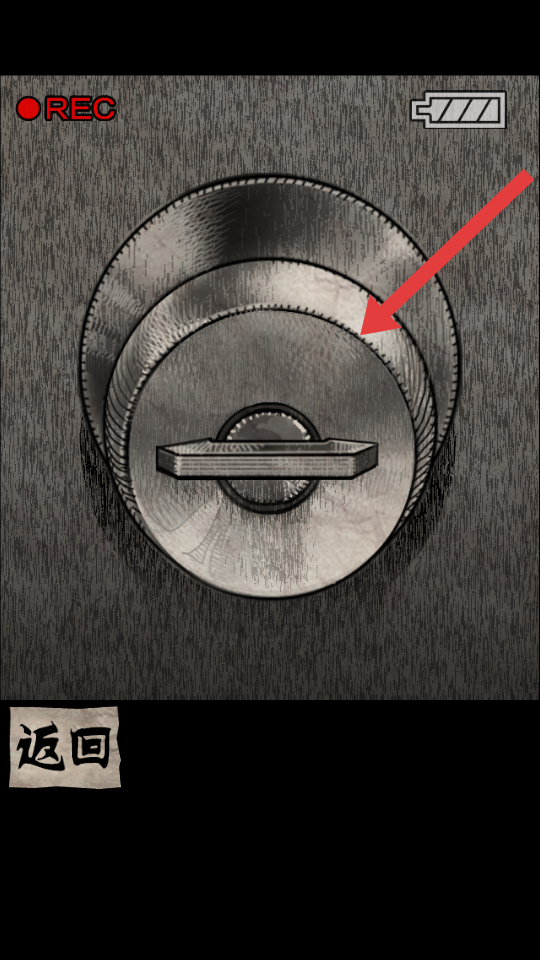 3、回歸正常的視角,點(diǎn)擊門把手后放大細(xì)節(jié),發(fā)現(xiàn)門把手上插著鑰匙,點(diǎn)擊轉(zhuǎn)動(dòng)鑰匙,看看是否有異常。