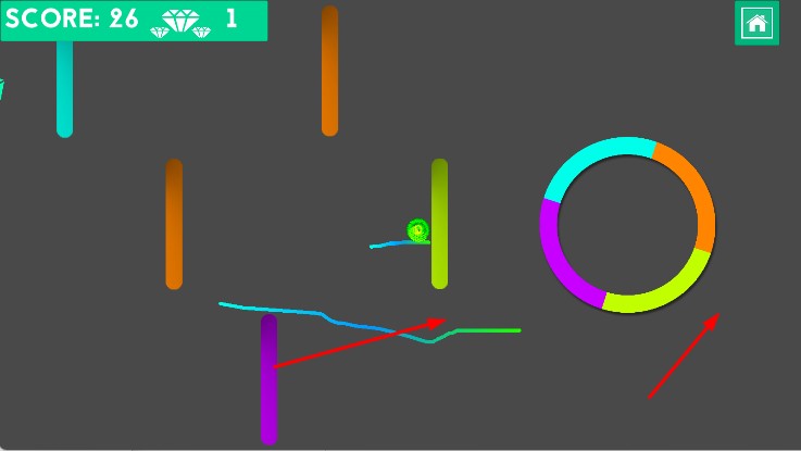 2、畫線時(shí),引導(dǎo)小球躲避障礙,收集鉆石,保持小球在路徑上滾動(dòng)。