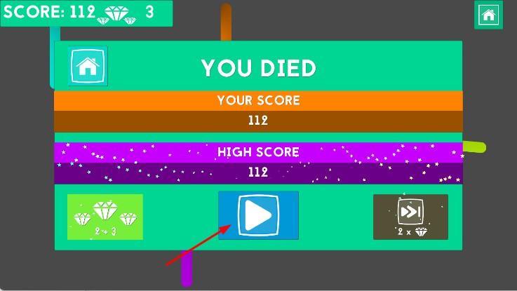 3、小球掉落或失敗后,可查看得分,點(diǎn)擊重玩按鈕,繼續(xù)挑戰(zhàn)。
