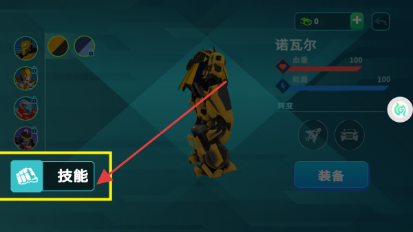 2、在角色界面,點(diǎn)擊技能按鈕,可查看、配置變形金剛的技能,依據(jù)戰(zhàn)斗需求,調(diào)整技能組合,提升戰(zhàn)斗能力。