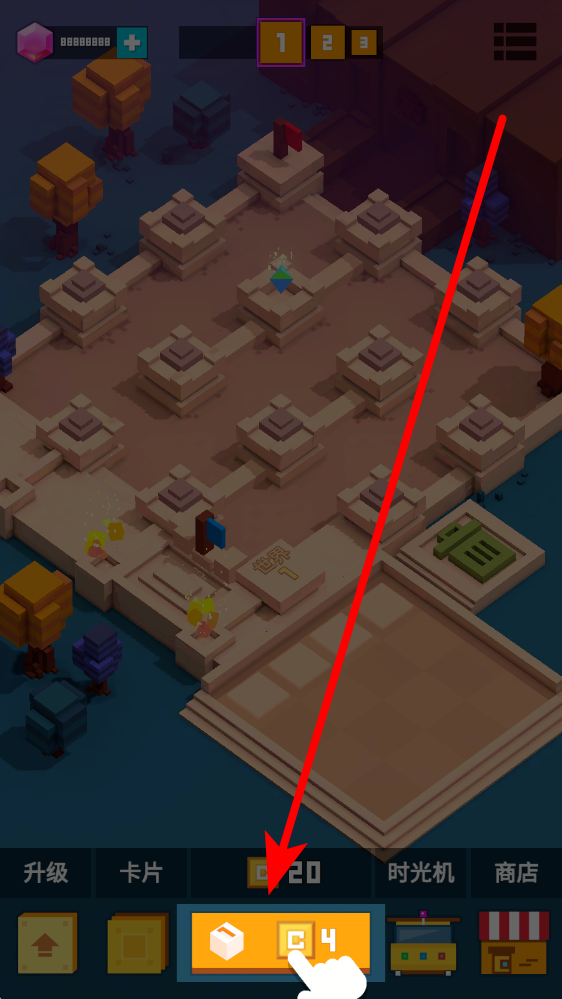 1、進入游戲界面,點擊下方功能按鈕如帶有數(shù)字標(biāo)識的按鈕,獲取方塊的資源,留意方塊的顏色與數(shù)字的信息,為后續(xù)操作做準備。