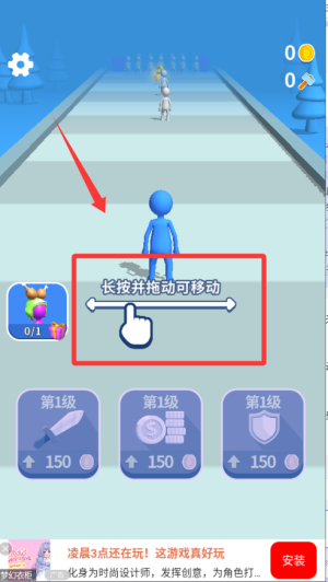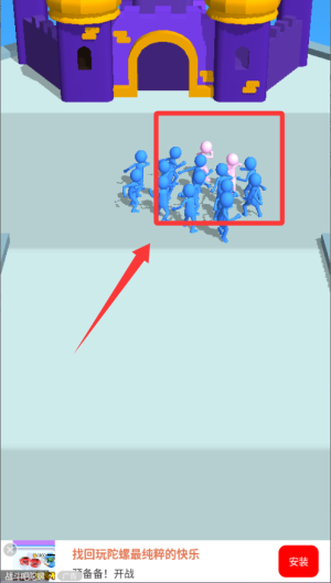 1、開始游戲后,控制小人向前移動,通過左右滑動屏幕來避開障礙物和敵人,遇到白色小人時,主動撞擊將其轉(zhuǎn)化為隊友。