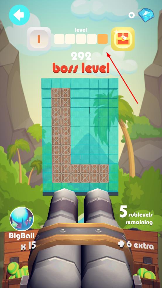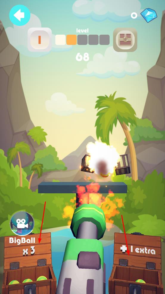 2、發(fā)射消耗炮彈,左側(cè)寶箱補(bǔ)充數(shù)量,合理使用BigBall道具提升破壞效率。