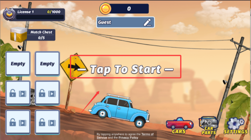 1、點擊主界面開始按鈕即可進入山地競速世界。