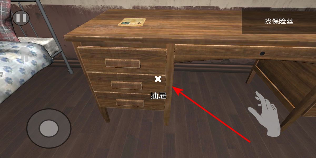 2、進入場景后,留意周邊可互動物品,如房間里的抽屜,靠近后點擊打開,搜尋其中可能存在的保險絲等關(guān)鍵道具,為解謎做準備。