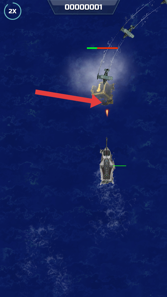 3、利用倍數(shù)加成1X→10X,倍數(shù)越高傷害或者得分越高,專注打血條敵機,避開水面干擾,持續(xù)的射擊清屏。