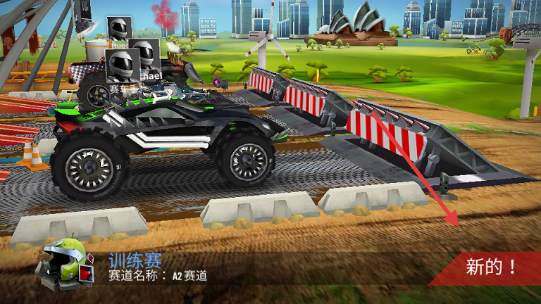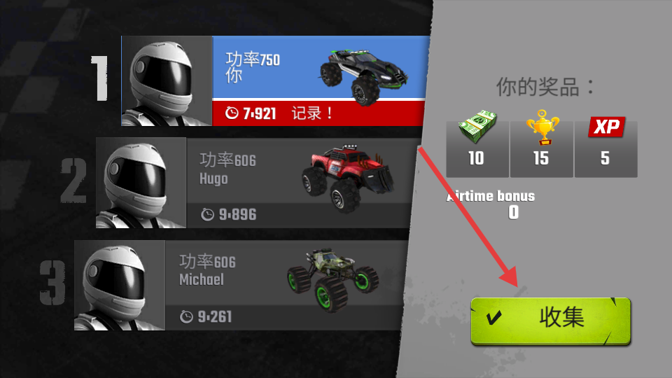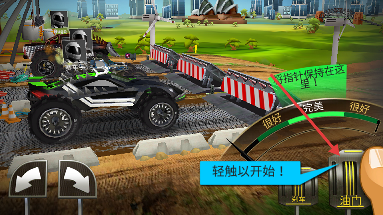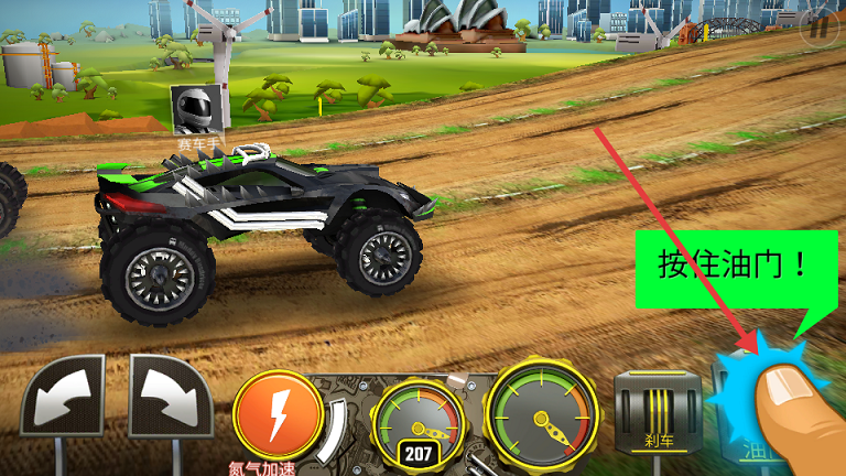 1、選擇心儀怪物卡車參與競速,通過漂移加速等操作超越對手。