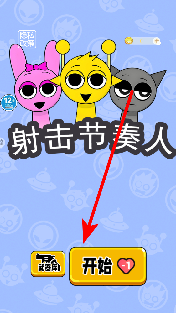 1、進(jìn)入游戲的主界面,點(diǎn)擊開始消耗1點(diǎn)愛心,可先進(jìn)入武器庫(kù)挑選合適槍械,了解武器屬性,為戰(zhàn)局儲(chǔ)備火力,再開啟對(duì)戰(zhàn)。