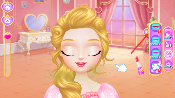 1、公主裝扮玩法:從服飾庫(kù)中挑選公主裙,搭配同風(fēng)格的頭飾、項(xiàng)鏈與鞋子,再為公主涂抹淡淡的腮紅與口紅打造甜美公主形象。
