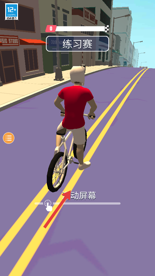 2、競速途中,通過左右滑動屏幕控制自行車轉(zhuǎn)向,遇到彎道時靈活調(diào)整方向,同時留意沿途加速帶,駛過加速帶獲取沖刺加成。