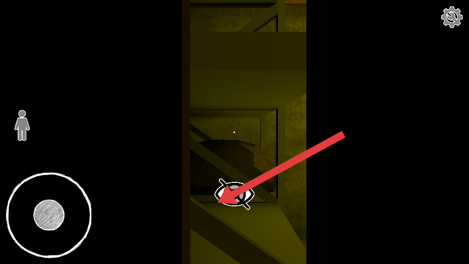 3、進(jìn)入新區(qū)域,遇視野限制眼睛叉號(hào),慢移找掩護(hù)的物體,避開紅圈視野的范圍,推進(jìn)通關(guān)。