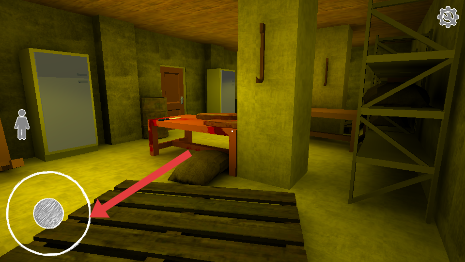 1、用右側(cè)虛擬搖桿進(jìn)行移動(dòng),搜索房間的道具比如桌子、架子可能藏物,點(diǎn)擊手型按鈕互動(dòng)拾取。
